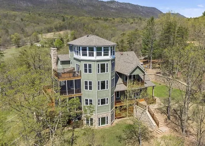 Riverbend Lodge Spacious Riverfront Home With Hot Tub Pool & Mountain View Bentonville entices active guests with access to a fitness room and is located within 6 km of the Shenandoah River State Park. Featuring a patio, this Bentonville holiday home is situated around a 15-minute drive from Secret Passage Ranch.